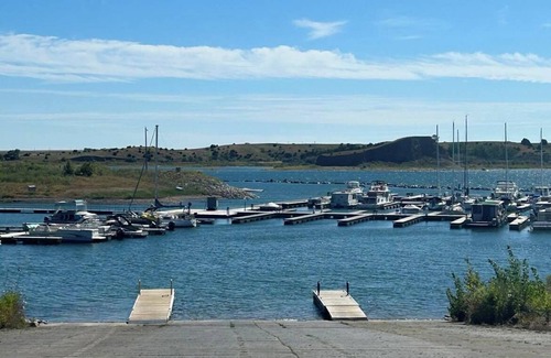 you will find a peaceful feeling as this retreat is backed up to open space with a fire pit for you to enjoy (please bring your own firewood) It's about a mile to beautiful lake Oahe.
