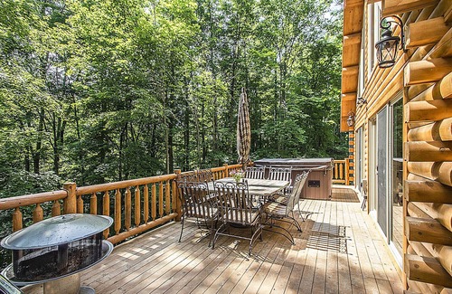 4 bedrooms and 3 baths, truly a luxury experience First floor boasts kitchen with granite countertops, 8 person dining table and an entire wall of windows overlooking a gorgeous wooded ravine. You can't help but relax in the hot tub as you enjoy the scenery. Walk out lower is sure to entertain all ages of guests and includes a bar witbh refrigerator and game machine, pool table, dart board and big screen TV with video library. We have a Ring doorbell to protect the property when vacant.