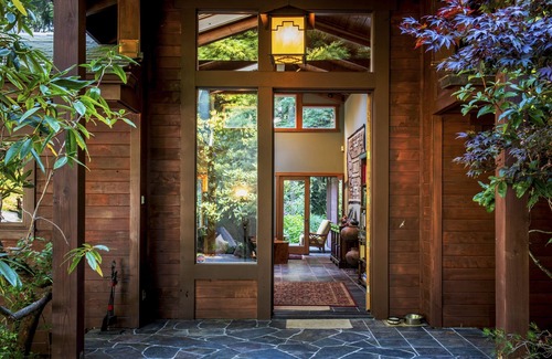this gated pacific northwest craftsman style home on nine acres is surrounded by manicured lawn meadows, extensive lush rhododendron gardens, two streams, and a pond Planted in the 1950's by Fred Meyer situated two miles north of the fishing village Trinidad and a thirteen minute drive from Arcata Airport with a 6,046 foot runway. This quiet, tranquil home is a perfect place to stay while exploring the nearby Agate Beach at Patrick's Point, College Cove, Trinidad Head, and Redwood National Park. After a bike ride on the fat tire bikes, enjoy a glass of wine in the Adirondack chairs on the pier at the pond. Dine at the nearby Larrupin's Cafe "an exceptional dining experience" or drive North to the mouth of the Klamath River and dine at the Historic Requa Inn.