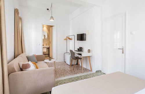 enjoy comfort and convenience in this thoughtfully designed 19m2 master room Featuring a spacious layout with a double bed and a sofa bed, its perfect for couples with a child or a small group of friends. The private balcony offers charming views of the town, while the modern bathroom ensures a relaxing stay.