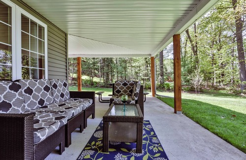 relax on the covered patio facing the backyard while you grill or enjoy cocktail hour with your family and friends Enjoy campfires around the fire pit, or head down to the waterfront for some water adventures. You can ski, tube, kayak, fish, swim, sunbathe, and relax on the beautiful North Twin lake. A lakeside swing is perfect for watching breathtaking sunsets.