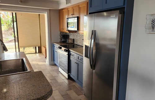 comes with everything you need - dishes, pots, pans, silverware, wi-fi, laundry room, 3 flat screen tvs, linens and towels (bath and beach), amazing bay views, and the beach just across the street