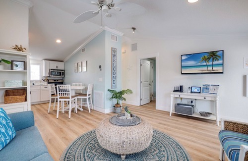 Sunset Azul is a fully-updated 2 bedroom/1 bath gulf-side ground level villa on the southern end of Holmes Beach. It's quiet, yet close to shopping, restaurants and trolley stops. Best of all, this unit is only a few short steps to the white sandy beaches. This villa has a fully-equipped kitchen, granite countertops, stainless steel appliances, cozy living area and luxurious bedrooms, turnkey furnished in beautiful contemporary beach decor. Amenities also include heated pool, washer/dryer, cable TV, high-speed internet, A/C, and more. Everything you could ask for in the perfect beach vacation home, including a fabulous shared heated pool with waterfall for relaxing after a full day at the beach. Close to shops and restaurants. Each villa offers an outdoor private patio, lush tropical landscape. With the spacious common area providing a paver courtyard, charming handmade tiki hut and lush tropical gardens making the perfect setting for an unforgettable beach getaway. Just a 90 second walk from the sugary white sands of the Gulf beaches, the villas are a serene and relaxing retreat.