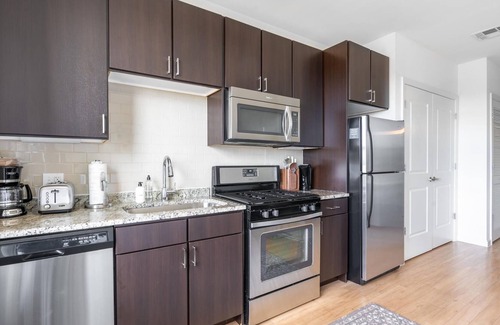 somerville is a youthful and vibrant suburb of boston, home to harvard and many boston-area attractions This gorgeous studio in the Assembly Row neighborhood is close to great restaurants like Totto Ramen, Southern Kin Cookhouse, and Earls Kitchen + Bar as well as convenient spots like the Assembly Row shopping center and Assembly Square (featuring Trader Joe's), all within walking distance. Nearby green spaces include Sylvester Baxter Riverfront Park and Draw Seven State Park. With the Assembly subway station just a few blocks away, Boston is within easy reach, with hotspots like the New England Aquarium, Chinatown, the Museum of Science, and the Museum of Fine Arts accessible from the Orange Line. During your stay, you'll love this apartment's warm, elegant style, newly-renovated kitchen, and on-site laundry.