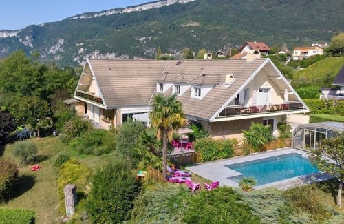 on a fully enclosed property of 3 500m² in a quiet and well-exposed residential area Near the beach (1km), the spa town of Aix les Bains (6km) and its port (3km). Secure parking.