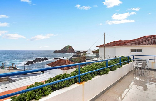the apartment has a private balcony with a table and chairs, where you can enjoy the sea view and the promenade while having breakfast Within a short walk of 1 to 4 minutes you will find supermarkets, restaurants, and a bar (between 80 m and 290 m away). The nearest natural pool, ideal for swimming and relaxing, is only a 3-minute walk away (230 m). A visit to the 18th-century Forte São João Baptista, which houses an aquarium with over 70 different animal species, is also recommended. The nearest beach (Praia da Laje) is a 10-minute drive away (7.9 km). Madeira Airport can be reached in about 1 hour and 20 minutes by car (65 km).