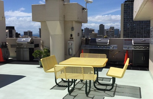 the view from the 19th floor offers diamond head, ala wai and ocean views A nice breeze is found high on the 29th floor where pool, sauna and barbecues are situated. One parking spot is included in the rental amount. Fully secured building with 24 hour security. The bus stop is located a short block from the Fairway Villa and Waikiki Beach about 2 to 3 blocks! Food Pantry a 2 minute walk..