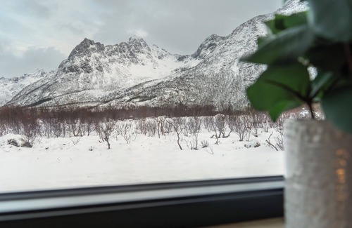 Welcome to our luxurious Lodge in Lofoten, built to high Scandinavian standards, where comfort meets the wild beauty of nature! Enjoy stunning views of the midnight sun and northern lights over the mountains in Lyngvær. Relax in the jacuzzi (new!) on the terrace, cook in a fully equipped kitchen, and rest in 2 bedrooms with king beds plus a comfy double sofa bed, perfect for up to 6 guests. The bathroom also includes a washer/dryer..