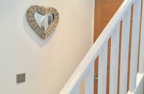 Recently refurbished 1st Floor duplex in Victorian house conversion. Upstairs, our property features 1 double bedroom with king size bed and fitted wardrobes, one twin bedded Room, and one room with a set of bunks. the bathroom features a large bath with shower over and monsoon head, all fed by a large pressurised hot water tank , with lots of hot water for showering the whole family when you come off the beach!