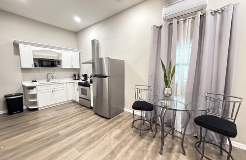 Welcome to your stylish one-bedroom hideaway, perfectly situated just minutes away from PIE Airport. This charming retreat is ideal for both leisure travelers and business professionals seeking comfort and convenience. With modern amenities and a spacious atmosphere (600 sq ft with 12 ft ceiling), you'll feel right at home during your stay. The bedroom features a comfortable queen-sized bed with high-quality linens, ensuring a restful night's sleep. Ample storage space is available for your belongings. The stylish living area is designed for relaxation, equipped with a smart flat-screen 55" TV and comfortable seating. Enjoy your favorite shows or unwind with a good book. The fully equipped kitchen includes modern appliances, cookware, and utensils, making it easy to prepare meals during your stay. A coffee maker is also provided for your morning brew. The bathroom is well-appointed with fresh towels and essential toiletries for your convenience. Free WiFi, Air conditioning, Smart 55" TV in living room and 40" TV in bedroom, Free parking on premises, and Self-check-in for added convenience. Located just a short drive from PIE Airport, this hideaway offers easy access to local attractions, dining options, and shopping centers. Explore the beautiful beaches of St. Petersburg or indulge in the vibrant nightlife nearby. Guests will have full access to the entire unit, including all amenities listed. Feel free to make yourself at home! Book Your Stay - Whether you're here for business or leisure, our stylish one-bedroom hideaway is the perfect choice for your next visit. Book now to secure your dates and experience comfort and convenience close to PIE Airport!.