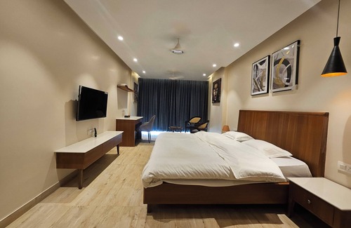 Your Jaipur adventure begins at this amazing studio. This adorable property features a cozy king bed, AC, WiFi, and a fitness room. Guests can freshen up in the bathroom with a hairdryer and shower. Enjoy your time in Jaipur at our charming studio..