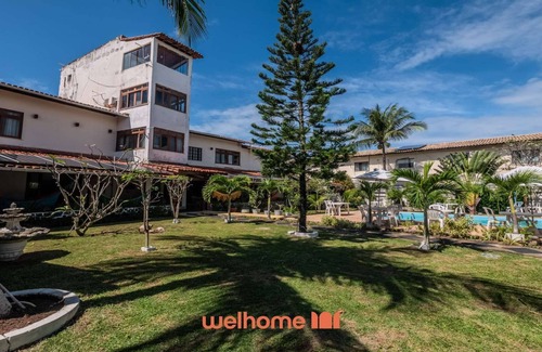 a área externa oferece piscina com espreguiçadeiras, quintal com rede, varanda com área gourmet, churrasqueira, cozinha externa, pátio com assentos ao ar livre e chuveiro externo para quem chega da praia A pousada possui garagem descoberta com capacidade para até 10 carros.