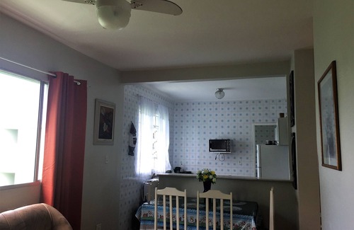 Regente building, waterfront, near the statue of Iemanja. Ample of 92 m². with 2 dormitories, with 10 accommodations, being 8 adults and two children (from 0 to 12 years old). A dormitory with 3 bunk beds, another dormitory with a double bed box and a bunk bed. Living room with two comfortable sofas, LG FULL HD TV, table with 4 chairs. Kitchen with stove, refrigerator, cabinets, plus a table of 4 seats. CEILING FANS IN THE ROOMS AND IN THE ROOM. Building with games room, billiards and ping pong, garage with limited space, occupied by one car per apartment depending on availability, as the building has no vacancies for all apartments. We have a garage in the adjacent adjoining building, which can be rented separately, to be arranged..