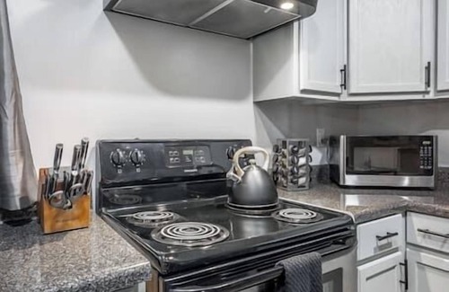 the fully stocked kitchen is ready for you to whip up delicious meals, with a stove, oven, refrigerator, and all the essential appliances and cookware Enjoy your meal in your suite, or step outside to the outdoor furniture and enjoy your meal al fresco.