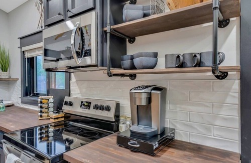 summer breeze at willow treehouse offers 2 decks, one off of the main living space to walk out for optimal wooded views, and one off the bedroom to enjoy the sun rising with a warm cup of coffee The main level consists of a cozy living area, kitchen (refrigerator, microwave, stove, toaster, coffee maker, and dishwasher), private soaking tub on the deck (during warm season), and bathroom with conventional toilet, all new fixtures, and rain head shower fixture. Upstairs you will find a perfect cozy space to enjoy after a day of adventures. There are three total sleeping spaces and one bedroom in Dreams of Spring. Every bed features high-quality sheets and pillows for you and your guest's comfort during your stay. The bedroom showcases a King-sized bed, and the private loft and sleeper sofa are both full-sized beds. Two adults can comfortably sleep in the full-size bed. Other features that you will find when visiting the treehouse; 3 wall-mounted mini split units for heat and air, Two Smart TVs, WIFI, coffee, an outdoor fire pit, and a charcoal grill.