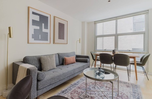 as with any blueground apartment, you’ll find a thoughtfully designed space complete with beautiful furniture and a fully equipped kitchen in this two bedroom property And, thanks to our superior quality mattresses, luxury linens, and towels, you can relax knowing you’ll always feel comfortably at home. When you’re ready for some fun, you can take in the Boston vibes or bring the entertainment to you with the premium wireless speaker or smart TV.