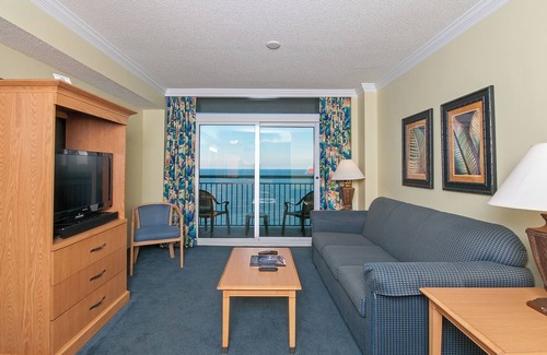 Wake up to serene ocean views and endless adventure along Myrtle Beach's vibrant coastline. Just a short drive from the airport, this oceanfront gem offers direct beach access, a relaxing lazy river, and nearby fun at Family Kingdom Amusement Park. Stroll the Myrtle Beach Boardwalk or soar on the SkyWheel.