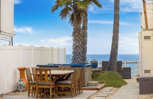 step outside to your expansive oceanfront patio—your front-row seat to breathtaking sunsets over sunset cliffs Lounge in the private Jacuzzi under the stars, gather around the al-fresco dining table for memorable sunset dinners, or relax on the oceanfront sectional with a glass of wine. The playful lifeguard-style turret chair offers a fun perch to soak in the panoramic views.