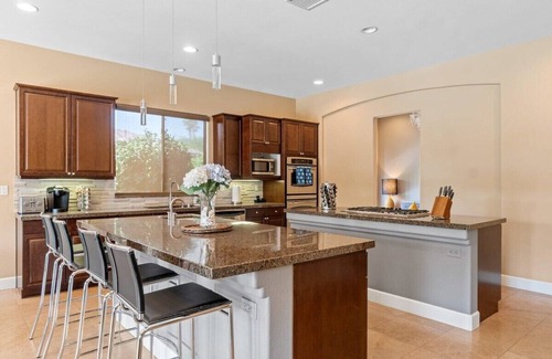 Sunset Palms by VARE | Pool+Spa, BBQ, Fire Pit, at Montage! has 4 Bedrooms , 3 Bathrooms, and max occupancy of 10 people. The minimum rental for this property is 1 nights, but this can change depending on the season you plan on staying. Previous guests have given good rated it, and VRBO labeled it a top-rated House because of the excellent services rendered by the owner or manager of this House, and has consistently provided great experiences for their guests. Most families or guests that use it recommend it to their friends and some of them are repeat guests. House has a friendly neighborhood, and the Indio has interesting places to visit. If you want to learn more about the House in Indio, such as places to visit and things to do nearby, you can check below to learn more.