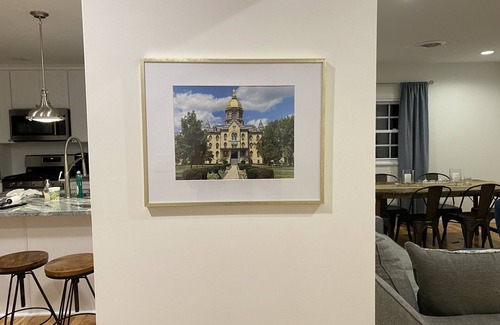 Clean, fresh, and neat! Great new renovation of a 4 bedroom 2 bath home just two blocks from Notre Dame Ave. and a view of the Golden Dome! Open floor plan makes this the ideal space for hanging out with your group! Perfect location and an easy walk to Notre Dame stadium! Great bright white kitchen with granite countertops for cooking/entertaining . Two fully renovated bathrooms with carrera marble/tile. Off-street parking 5-6 cars. Large backyard for relaxing after a wonderful victory!.