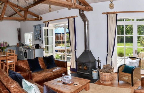 our luxury cottage is a real home from home, with an abundance of original features, including vaulted ceilings and exposed beams Light and airy, the open plan living space has a cosy wood burning stove, perfect for chilly evenings. The kitchen with a range-style cooker includes a sociable dining area. Three spacious ground floor bedrooms all have first-class en suites.