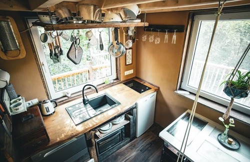 Sustainable Picus Viridis tree house with sauna and hot tub in the countryside is located in Zernien. Sustainable Picus Viridis tree house with sauna and hot tub in the countryside provides accommodation, featuring Fireplace/Heating, Barbecue/Outdoor Cooking, Kitchen, among other amenities. This Cabin features Fireplace/Heating, Barbecue/Outdoor Cooking, Kitchen, to make your stay a comfortable one.