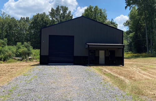the cabin offers an attached 56' enclosed garage with roll door This cabin features 2 cozy bedrooms - one with two sets of bunk beds and the other with a king bed. . The bathroom offers a refreshing walk-in tile shower for a terrific start to the day or relaxing end of the day refresher. A full laundry room and kitchen allow for a more home type feeling as you can keep items clean, or cook your favorite meal. Enjoy your time in Scottsboro at our cabin..
