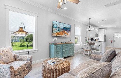 Welcome to Tarpon Tides Cottage! This cute, cottage is located just a mere 3-minute walking distance to the historical Sponge Docks in Tarpon Springs. We thoughtfully designed this cottage for both comfort and convenience. Enjoy these standout features: blackout curtains and Roku Smart TVs in all bedrooms and living room, coffee bar with to-go mugs located inside of the spacious pantry, fully equipped kitchen, magnifying light up make-up mirrors, board games, outside propane Weber Grill, a relaxing covered front porch with ceiling fans to enjoy watching the sunsets and a covered parking spot.