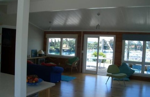 This is a Lockwood house and cabin. The house has been extensively renovated including a new kitchen. It looks out over the Waikato River and its marina.from the deck on the eastern side there are views of river,lake, mount tauhara and the
