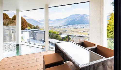 Featuring pool views, TERRA Yufuin in Yufu features accommodations, an infinity pool, an open-air bath, and a garden. This property offers access to a terrace, free private parking, and free Wifi. Guests can use the sauna and hot spring bath, or enjoy mountain views. All units at the villa complex come with air conditioning, a seating area, a flat-screen TV with streaming services, a kitchen, a dining area, and a private bathroom with slippers, a hot tub, and a hair dryer. An oven, a microwave, and toaster are also available, as well as a coffee machine and a kettle. At the villa complex, every unit is equipped with bed linen and towels. For guests with children, the villa offers kids pool and a children's playground. Popular points of interest near TERRA Yufuin include Iwashita Collection, Yufuin Station, and Norman Rockwell Yufuin Museum. Oita Airport is 34 miles from the property..