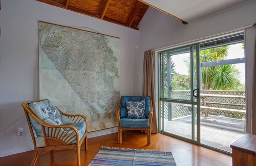 take it easy at this unique and tranquil getaway Enjoy beautiful views across the bay from elevated decks and the mezzanine living room. Mt Manaia forms an impressive feature of the skyline.