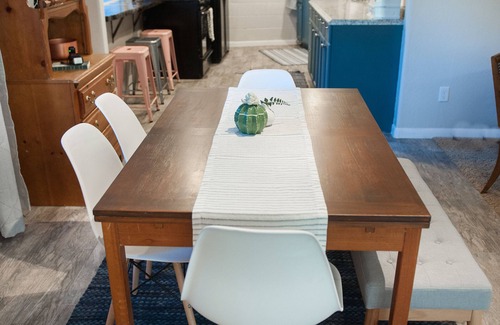 we've repurposed quality items that we've found locally, here in flagstaff We are proud supporters of our local businesses and use "green" cleaning when our guests depart. Guests can utilize the full kitchen which includes a full sized refrigerator, oven, gas-stove, and cooking utensils, all within the unit.