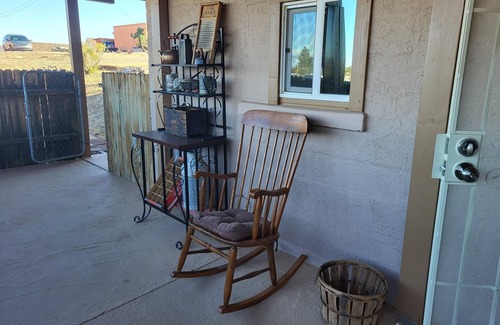 Relax with the whole family at this peaceful place to stay. Just a "whoop-n-a-holler" away from the bustling Historic District, our guest cottage sleeps 4. Private driveway and entrance. Secured by gate and privacy fence, there's plenty of room for family and pets. Limited mobility accessible with no steps. Large porch/patio rewards you with world-class views of Arizona mountains and sunsets. Full kitchen, games in the closet, free wi-fi, books to read, and movies to watch. Make yourself at home at the Cactus Rose Cottage..