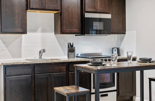 - apartment-size fridge, stove/oven, microwave, keurig/drip coffee maker, cooking basics