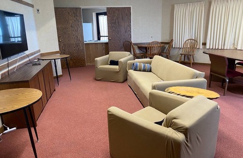 The Echo Center is an updated 9000 square foot building that has 8 bedrooms, sleeping up to 16 people. The kitchen is fully stocked and opens to the dining area/tv room, with games, puzzles and movies galore! The activity room can double as additional sleeping quarters or a place for quilting/crafting. Two large bathrooms have multiple stalls and a shower in each. The large center area contains a full size pickleball court, half basketball court, ping-pong table, corn hole boards and a 12 ft movie screen and projector (laptop not provided). Additional amenities include high-speed internet, outdoor barbecue and large grassy areas. The Clark's Fork of the Yellowstone River is a short walk down the road. Use this property as a base camp to Yellowstone National Park, the Pryor Mountains, the Beartooth Highway and Red Lodge Mountain, where outdoor adventure awaits..