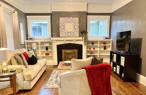 This historic home built in 1900 with a modern touch still maintaining its historic character is a cozy place for you and your family. Located 3 minutes from downtown Goldsboro and close to Seymour Johnson Air Force Base. Huge back yard with fencing and patio for relaxation. Plenty of space with a game room with air hockey and board games. Sleeps 7 with two full baths..