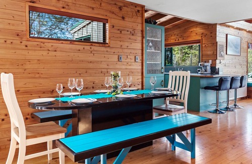 you can feel the love poured into this barn style home, which has been stylishly revamped and modernised From the polished wood and high ceilings to the colour pops of teal and bottle green throughout, The Lakeview Chalet is a magical find.