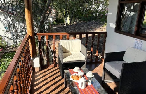it is an old hacienda house remodeled with fine finishes and surrounded by beautiful gardens and terraces You will find tranquility and peace for a good rest. We are 10 minutes from the Plaza de Armas and very close to supermarkets, pharmacies and Italian food restaurants, chifas and chicken shops. The transfer is quick and safe as we are close to main roads, you can travel by bus, walking or by taxi..