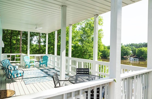 This 3 story, 3 deck home is perfect for your Lake Wedowee vacay. Brand new remodel with fresh and fun art filled spaces, 4 bedrooms, open bed area, 7 beds & 3.5 baths offers plenty of room for the whole family to relax, unwind and enjoy.
