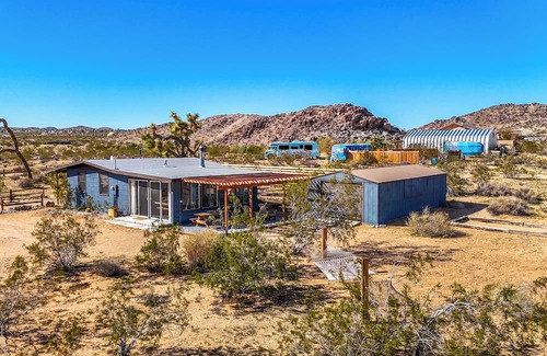 lovingly designed and curated, it is the perfect place for a weekend getaway for two Watch the sunset from porch rocking chairs, stargaze in the hammock, cozy up by the fireplace and recharge surrounded by gorgeous desert views. Conveniently located 10 miles to the park entrance and a quick drive to the Joshua Tree village..