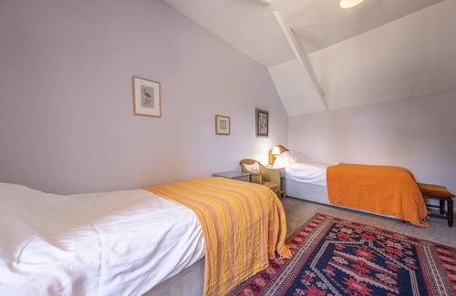 on the first floor, the old coach house offers three quiet, traditional bedrooms that are well-served by two bath/ shower rooms Two of the bedrooms feature king-sized beds, with the third bedroom offering adult twin beds. The nearby master bathroom contains a large bath and electric shower overhead. For further convenience, an en suite shower room is connected to the twin bedroom.