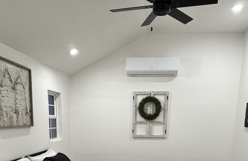 Beautiful and comfortable inside! Nestled among all the trees at the back of our quiet 20 acre property is our 826 sq home. Two bedrooms and two baths, A full kitchen and living room provide all the amenities you’ll need. Enjoy a cup of coffee and the sunrise from the front porch, or just take in the sights and sounds of nature from around the property..