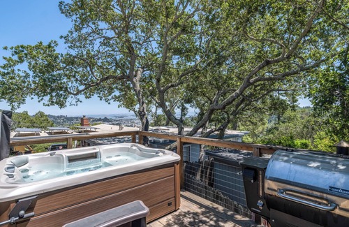 Welcome to The Treehouse—a serene San Rafael retreat on a quiet court, just minutes from downtown cafés, markets, and trailheads. Inside, you’ll find airy, light-filled living spaces, an updated professional kitchen, and a flowing floor plan perfect for everyday comfort. Bedrooms are spacious and tranquil; the primary offers a king size bed with an ensuite full bath and a calming outlook. The second bedroom has views of the bay and its own full bath with a tub. Outdoors, enjoy a sunny, private deck ideal for morning coffee, al-fresco dinners, or sitting to read a book under our canopy of trees. Relax in our hot tub to start or end your day.