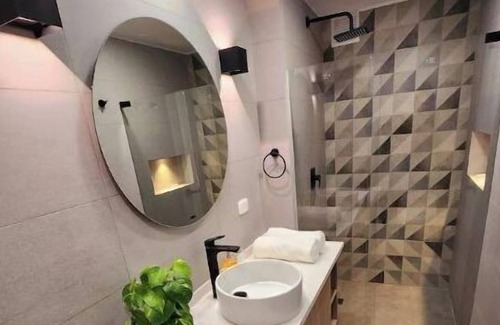 the bedroom is a tranquil haven, furnished with a comfortable queen-size bed and adorned with soft linens and plush pillows With ample storage space and a cozy ambiance, it's the ideal place to retreat after a day of exploring the city. The apartment also features a clean and modern bathroom with a refreshing shower, provided with fresh towels and essential toiletries for your convenience.