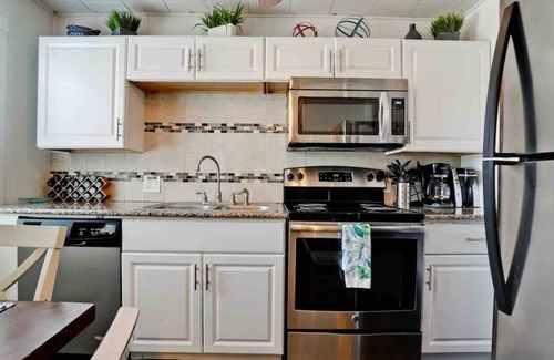 Great news! We've reopened after Milton! All Restaurants, stores, our beach access & Stumpy's Free Ride now open! In prime Manasota Key location, our talented interior designer created this beach bungalow gem with 2 bedrooms, 2 bathrooms, Tv's & efficient kitchen with dining set. Walk only 1 minute to delightfully uncrowded beach! Swim Spa with waterfall & massage therapy jets in common area. free Kayaks. peaceful, quiet login to your favorite streaming service with smart tvs