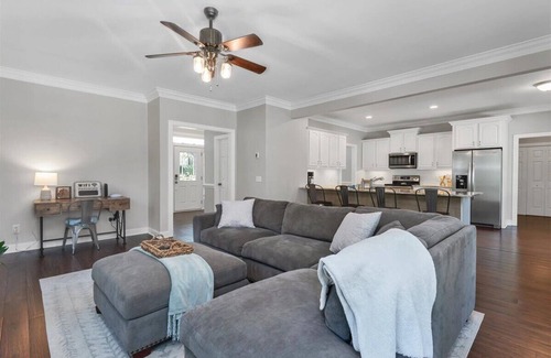 previously our family home, we spent the better part of 3 years updating this house before being moved (again) by the military We have the space for everyone to have privacy but you are all going to want to spend your time together in the new kitchen, game room, or in the pool. we hope this feels like home to you too!