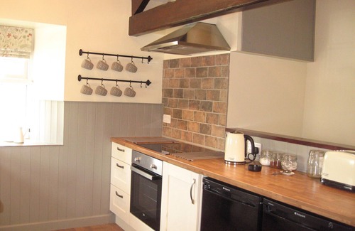 the first floor also has a beautifully decorated and well equipped kitchen with electric oven and hob, microwave oven, dishwasher, fridge and freezer The dual aspect windows give a lovely view of the village and the Wheatsheaf pub that is about 200 metres along the road. an easy walk when you prefer to eat out rather than cook and eat in!