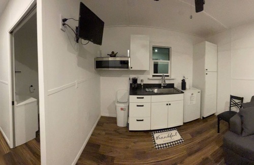 Cozy Tiny Home with Roku T.V, blackout curtains comfy queen bed. Kitchen area with electric griddle and microwave. Incredible views of boundary peak and silver peak mountain ranges. Walking distance from a beautiful fast moving creek with a fire pit. 10 minute drive from the Fishlake valley natural hot springs. Convenient halfway point between Las Vegas and Yosemite..