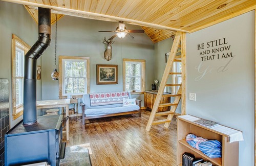 Welcome to this charming cabin in Corning. This completely private property with 56 acres offers a peaceful retreat for guests seeking a cozy getaway. With a loft and main area, including a king bed and a futon, you'll have plenty of space to relax and unwind. Don't worry, even though we are off-grid, we have a hot showers and a generator for lights in the evening or charging your devices, although you may want to unplug and simply enjoy the surroundings. The bathroom features a refreshing shower, and there is a wood stove for those cold nights. Immerse yourself in the beauty of the nearby Fingerlakes and fall in love with the lakes and wineries around the area. Whether you're exploring the local attractions or simply enjoying the tranquility of this cabin, your vacation here will be truly unforgettable..