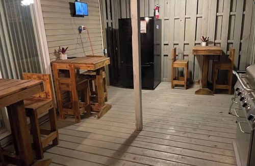 full bar on top floor with two tv's, air conditioned, ice cold beer fridges, liquor, bathroom & also a pool table in the basement with tv!